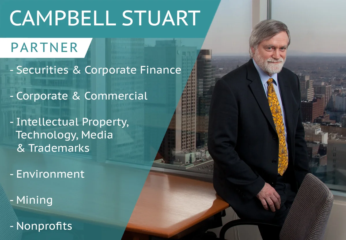Campbell’s practice focuses mainly on business law. He has particular expertise in corporate and commercial law, taking businesses public, including by reverse takeover, and has long experience in electronic commerce, technology transfers and mining law. His philosophy of practice is to help clients prosper through practical solutions tailored to their ambition, situation and budget, solutions which he helps them plan, negotiate and implement. Before practising law, Campbell worked on community development projects here and in Uganda, and continues to offer his services to local and international charities and community organizations. He is also the former mayor of Montreal West.